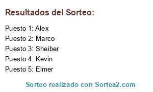 Lista de participantes: Alex, Kevin, Sheiber, Elmer, Marco.