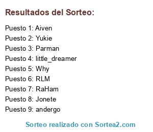 Lista de participantes: Parman, little_dreamer, Jonete, Why, RaHam, RLM, Yukie, Aiven, andergo.
