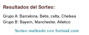 Lista de participantes: Barcelona, celta, Atletico, Bayern, Manchester, Betis, Chelsea.