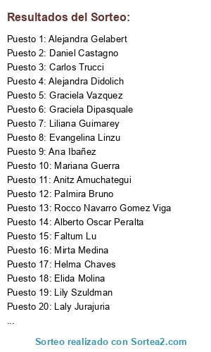 Lista de participantes: Emiko Hakodate, Alejandro Cesar Crisciones, Yanela Lic, Alejandra Gelabert, Palmira Bruno, Helma Chaves, Alba Rosa Olveira, Anitz Amuchategui, Graciela Dipasquale, Elida Molina, Mariana Guerra, Brenda Byrtus, Sandra Benitez, Graciela Filomeno, Claudia Elisabet Lopez, Reina María, Carlos Trucci, Faltum Lu, Daniel Castagno, Alberto Oscar Peralta, Luciana Manzo, Lily Szuldman, Graciela Vazquez, Pochyy Ta, Alejandra Didolich, Daniela Ybarra, Evangelina Linzu, Federico Gonzalez, Mirta Medina, Ana Ibañez, Lour Rossi, Rocco Navarro Gomez Viga, Liliana Guimarey, Laly Jurajuria, Mariana Lara.