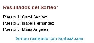 Lista de participantes: Adela Ruiz Ruiz, Adeli Barrera Perez, Adrian Otero, Adriana Morales Sanchis, África Fernandez Pousada, Agurtzane Perez Loyola, Agus Gil, Aida Dominguez Valls, Aida Gonzalez Samprimo, Ainara Urrestarazu, Ainhoa Cuevas, Ainhoa Enriquez Calduch, Aitana Zubeldia, Alba Escribano Hernández, Alba Lopez, Alejandra Ochoa López, Ali Cantero, Alicia Hoyo Martin, Alicia Jiménez Gálvez, Alicia Pozo García, Alicia Trejo, Alma del Barrio, Almudena Arriaza, Almudena Blanco Perez, almudena bodas arriero, Alonso Gomez Mendez, AManuel Ro, Amparo Arnaiz Borrero, Amparo Borrero Dorado, Amparo Echevarría, Amparo Ferrandiz Iniesta, Amparo Sanchez jordano , Ana Alarcón, Ana Anita, Ana Antelo Prieto, Ana Belén, Ana Belén Cano Tébar, Ana Belen Exposito Fernandez, ANA BELEN NOGUEIRA LOPEZ, Ana Casado, Ana Cristina Sanchez Peña, Ana Estefanía Galán Escartí, Ana Eva García Martínez, Ana Fdez Flores, Ana Gimeno Gascón, Ana González, Ana I. Fernández Pacheco, Ana Iglesias, Ana Isabel Luna Ballesteros, Ana Isabel Soto Ainsua, Ana Les Petits Pons, Ana Maria Celdran, Ana Maria Gonzalez Benito, Ana María Gutiérrez, Ana Maria Perez, Ana Maria Rivas Rivas, Ana Maria Tirado Vèlez, Ana Maria Valera Gil, Ana Plazuelo Caballero, Ana Polo en facebook. Nombre real Ana Sampietro Quilez, Ana Romero Ubeda, Ana Salgado Sartier, Ana Segui, Ana Silva Martin, Ana Sogorb, Ana Solorzano Roso, Ana Soria Daza, Ana Veronica Gonzalez, Anabel Garcia Hernandez, Anaïs Pérez, Angel Garcia Lopez, ANGELA TORNE, Angeles Arriero Sierra, Angeles Diaz Baena, Anna Bru De Sala, Anna Garcia Sola, Anna Gili Soldevila, Annet Borrero, Antonio Alarcón, Antonio Garcia, Antonio Infantes García, Antonio Morales, Antonio Raul Brea Morales, Antonio Rc, Anyka Sanchez Mnz, Araceli Cruz, Arantxa Sanchez Colmenero, Arantza Clavel Morante, Aranzazu Lopez Sanchez, Aroa Cristiano Minguela, Aroa Navarro Tatay, Aroa Orihuela Vega, Aroa Susino Vilchez, Aroha Tordable, Aurelio Valero, Aurora Anton, Aurora Hermida Perez, Azucena Blanco, Azucena Gallardo Piron, Barbara Garcia Jimenez, Bàrbara Llabrés Llabrés, Barbara Ramirez Lopez, Bea Rodriguez, Bea-Trici Monky, Beatriz Abellán, Beatriz Bodas Arriero, Beatriz Fdez, Beatriz Fernandez Lopez, Beatriz Fervenza, Beatriz Morales Clemente, Beatriz Rider, Beatriz Ruiz Hidalgo, Beatriz Torres Queiruga, Begoña Couto, Begoña Del Valle Montalvo, Begoña Huertas Otero, Bel Maraire, Belen Caballero Navarro, Belen Garcia Hernandez, Belen Gomez, Belen Gonzalez, Belén Martí Albert, BELEN PALOMERO MIGUEL, Belen Parra Barranquero, Belen Samper Marquez, Beli Pérez, Bibiana Espuch Limiñana, Blanca Berguio, Blanca Cuadri Tome, Bruno Castro Lara, Campanilla Portuense, Carles Jiménez, Carlota Prado, Carmela Vazquez Perez, Carmelo Alvaro Soria, Carmen Fernandez Fernandez, Carmen Jesus Rivera Perez, Carmen Maria Rodriguez Alonso, Carmen Montero, Carmen Rodriguez Rozas, Carmen Rozas Fernandez, Carol Benítez, Carola Gosalbez Valverde, Carolina Alvarez, Carolina Escudero Rodríguez, Carolina Garcia Gonzalez, Carolina Peña, Carolina Pozo García, Carolina Roger Manzano, Carolina Velazquez Cobo, Caste Lopez, Cecilia Sanchez Rivera, Celia De Santiago, Celia Pavón Barrero, Chari Cuadri tome, Chari Rechi, Charo Gil, Charo Romero Álvarez, Chiqui Perez Velasco, Chito Mordisquitos, Cintia Beigbeder Sánchez, Clara Agusti Encinas, Clara Muñoz Delgado, Clara Soriano, Concha Mp, Conchi Garcia, Conso Sanchez, Cristina Añón Rodríguez, Cristina Cabrera Morales, Cristina Fernandez Aragon, Cristina Garcia Gisbert, Cristina Martinez Garcia, Cristina Marzo Calvo, Cristina Muñoz Benítez, Cristina Perujo Melgar, Cristina Pomares Navarro, Cristina Prieto Cobacho, Cristina Valverde Muñoz, David Navarro Garrido, Davinia Barrios Garcia, Desi Desiirée, Desire España Noguera, Diana Zurdo, Dolores Maldonado Amaya, Dolores Sanchez, E Jose Alvarez, Efrén Rodríguez Climent, Eguskiñe Fernandez, Elena Burgos Hernandez, Elena García, Elena Mahugo Carles, Elena Tome, Elena Vega, Eli Fernandez Polones, Eli Ruz Caballero, Eli Velazquez Camacho, Eli Yo Yo, Elisabet Cruz Garcia, Elisabet López Santos, Elisabeth Lopez Fernandez, Elizabeth Azcárate, Elleem Alejandra Ortega Fernandez, Elma Gutierrez Garcia, Elsa San Jose Pilar, Ely Domenech, encarna alonso zapatero, Encarna Cabrera Exposito, Encarni Löpez, Enkar Benito, Enrique García García, Enxeñeria Consultoria, erasmo Berroa Vilmatelo, Esperanza Tostado Blanco, Esteban Balado, Estefania Cabeza Fuentes, Estefania Vargas Reyes, Ester Domenech Rodriguez, Ester Fernandez Muro, Ester Santos Lorenzo, Esther Bernabeu López , Esther Gallardo Ballesteros, Esther Hernández Alcaraz, Esther Lopez Español, Esther Pérez Muñoz, Esther Romero Martinez, Eva Artisa Parra del Yelmo, Eva Caballero Caballero, Eva Espinosa, Eva Fernández Rodríguez, Eva Limas Calleja, Eva Luz Morilla Prieto, Eva Maria Alvarez Sunico, Eva Maria San Jose, Eva Palacios, Eva Puelles Mesas, Eva Triviño Torres, Evag Pintado Plaza, Evita Naranjo, Familia Sorroche Escanez, Fatima Gomez Taboada, Fina Benavides, Flora Mendez Navarro, Fran Serrano, Francisca Blanco Risquez, Francisco Corbacho Moreno, Francisco Fernandez Cortes, Francisco Garcia, Francisco Javier Arnaiz Borrero, Francisco Javier Velasco Campaña, Geles Madrid, Geli Mendez Arias, Gema Canovas Fernandez, Gema De Pedro Sanchez, Gema Insa Plaza, Gema Lopez Marina, Gema Molina Gomez, Gemma Clufen Garcia, Gemma Cuadrat Coronel, Gemma Mirete, Gemma Valverde, Gertrudis Ariza Romero, Gloria Miguelez, Gloria Rodríguez banovic, Guadalupe Aznar Pascual, Guiller Escudero Martínez, Helena Trallero Franco, Inés García Lillo, Ingrid Santos Brándulas, Inma Casado Isern, Inma Lopez, Inma Pico Canto, Inma Pinto, Inma Romeo Lucea, Inmaculada Domingo Cívico, Irene Alvarez Buendia, Irene García, Irene Jimenez Lopez, Irina Samsonescu, Irma Corredor Abella, Isabel Alonso Plaza, Isabel Amaya, Isabel Cantillo Villanueva, Isabel Fernández, Isabel Grage