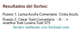 - Ganador: Larisa Acuña Comentario: Cintia Acuña Sofia Acuña