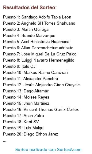 Lista de participantes: Hancy XD, Alex Hiro, Jeanmir Alexis, Junior Barrera Rojas, Moises Reyes, Alvinson Suniaga, Kevin William, Diego Huayta, Len Centeno, Lenii RG, Baalberith Victor, Jose Miguel De La Cruz Paico, Jose Altamiranda, Carlos PS, Mátíás Ûrrá, Brando Marzorque, Pedro Caro, Ever Elguera, Alexander Panebra, Santiago Adolfo Tapia Leon, Axel Hinostroza Huachaca, Winder Montilla, Anah Zafra, Martin Quiroga, Ronaldo Jimenez, Jose Enrique Silupu Valverde, Tyler Diaz, Diego Elthon Jarez, Vincent Thomas Garrix Cortex, Mark Mendez, Juan Castillo, Dago Altamar, Luis Gonzalo, Luis Malqui, Camilo Boiga, Markos Raime Canchari, Juan Pacheco, Fabrizio Grados Alvarez, Alex, Tlv Javi XD, Italo CJ, Fernando Alaban Ortiz, Federico Adrià Carrasco, Frank Emerson Simon Contreras, Alex Perez, Crispin Rojas David Jesus, Jesus Villegas Simon, Delzon Perez Gobel, Joel Romero, Camilo Castillo, Anghelo SH Torres Shahuano, Kiritto Zephyr Propiedad de Thalia, Carlos Lizama, Ronald Velasco Morales, Annie Pingaloca, Wilinger Carlos Espinoza Pilco, Wilhelm Velarde, Diego Andres ʚïɞ, Jojhan Robles, Jimmy R Alvarez, Allan Desconchetumadrisate, Anthony Remuzgo Alva, Gíámphóól Ósóríó Máýnás, Gerson Baldera, Laio Gonzalez, Fakuu Carbonel, Alex Lawer Miller, Dany Daniel Acasiete Pedroza, Mayko Adolfo Galdos Flores, Luiggi Navarro Hermenegildo, Hugo Arzola, Moises Raul Palomino Silva, Jhon Martinez, David González, Jesús Alejandro Giron Chayele, Arthur Slf, Jhosep Ramirez, Dylan XD, Alejoo Bitar, Jeffer Serrano, Fernando Yldermio Pezo Rojas, Leandro Valencia Buitrago, Kent SV, Kevin Silva, Mark Antony VM.