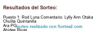 - Ganador: Rod Luna Comentario: Lylly Ann Otakara Chulita Quintanilla Ara PG Ahidee Rivas Carmen Rodríguez