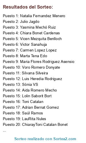 Lista de participantes: Eliana Marco Martinez, Saúl Ramos, Yasmina Mechó Ruiz, LauRita Nules, Adrian Bernat Gomez, Natalia Fernandez Menero, Lolin Saborit Bort, Maria Flores Rodriguez Asensio, Victor Sanahuja, Aida Romero Mecho, Voro Romero Donyate, Carmen Lopez Lopez, Luis Heredia Rodriguez, Silvana Silveira, Sònia VS, Patxi Barreda Frasno, Melanie Millan Casas, Julio Jagdo, Vicen Mezquita Benlloch, Chiara Bonet Cardenas, ChiarayToni Catalan Bonet , Toni Catalan, Marta Tena Edo.