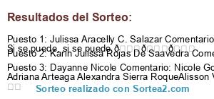 - Ganador 1: Julissa Aracelly C. Salazar Comentario: Participen chicas lindas Diana Yalico Priscila CF Yosy Cf Patty Ramos Si se puede, si se puede 😁😊🍀