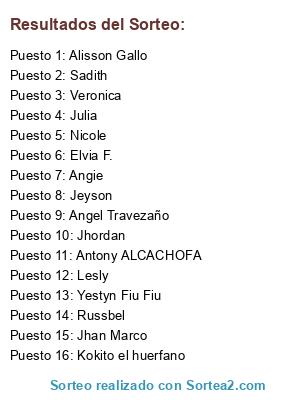 Resultados del sorteo: