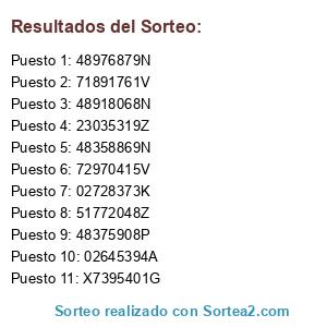 Este sorteo ha sido certificado por Sortea2. Sortea2 garantiza que: