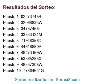 Resultados del sorteo: