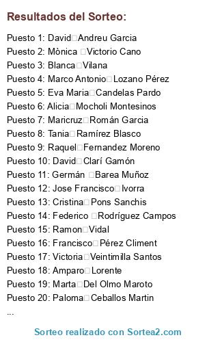 Resultados del sorteo: