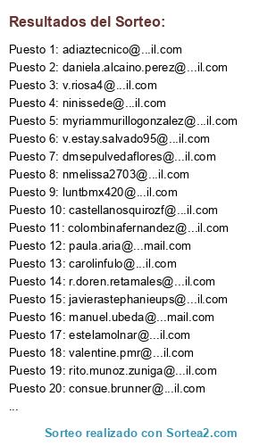 Resultados del sorteo: