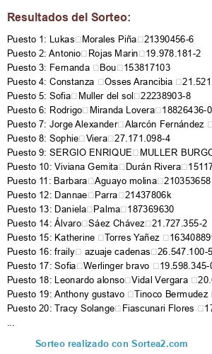 - Puesto 1: Lukas Morales Piña 21390456-6