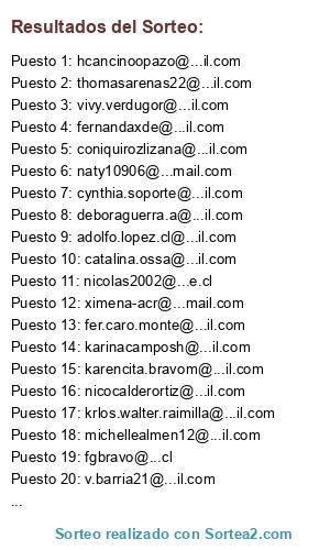 Resultados del sorteo: