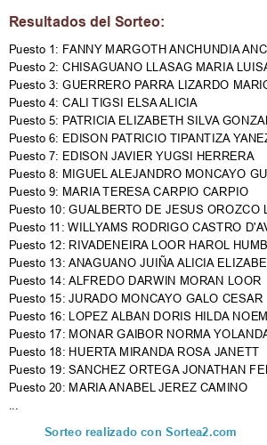 - Puesto 19: SANCHEZ ORTEGA JONATHAN FERNANDO