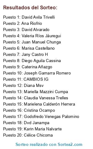 Lista de participantes: Juan Manuel Chunga, Marielena Calderón Herrera, Marisa Castellano, Renzo Chumpén Espinoza, Manuel La Noire Sedano, Valeria Ríos Jáuregui, Veronica Olaechea Ravello, Claudia Vanessa Trelles, Kerly Mendo, Diana Msv, Diego Aguila Cassina, Guillermo Campos, Caterina Añazgo, Karin Maria Nalvarte, Betox Timana, Jany Castro H, CAMBIOS IG, Rossana Ugarte, Nancy Alvino Tello, Jenifer Alexis Jara Lira, Alvaro Dávila Herrera, Joseph Gamarra Romero, Diego Iglesias, Christian Alvarez, Mariella Mazzini Cumpa, Eduardo Urbano Farfan, Juan Carlos Puglianini Loja, Denisse Herrera, Sue Abad, Godofredo Venegas Palomino, Célice Chicoma, Dvd Janampa, David Alvarado, David Avila Trivelli, Ana Riofrio, Sandra Sosa Aponte, Cristina Ocampo, .
