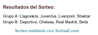 Lista de participantes: Shaktar, Juventus, Deportivo, Liverpool, Real Madrid, Betis, Llagostera, Chelsea.