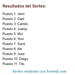 Lista de participantes: Ale, Camilo, Dani, Diego, Jemi, Jose, Juanjo, Moi, Santi, Tito, Yoni.