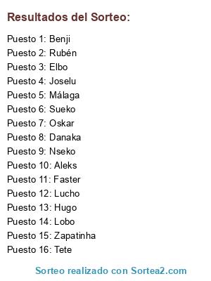 Resultados del sorteo: