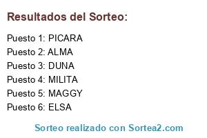 Lista de participantes: ALMA, MAGGY, DUNA, PICARA, ELSA, MILITA.
