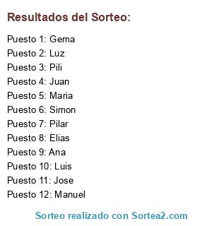 Lista de participantes: Gema (5 participaciones), Juan, Luis, Ana (2 participaciones), Maria, Pilar, Jose, Pili, Luz, Simon, Manuel, Elias.