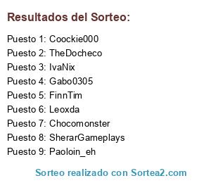 Lista de participantes: IvaNix, SherarGameplays, TheDocheco, Chocomonster, Paoloin_eh, FinnTim, Gabo0305, Leoxda, Coockie000.