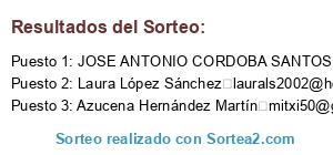 - Puesto 1: JOSE ANTONIO CORDOBA SANTOS jcs_antonio@hotmail.com