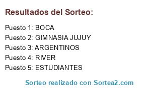Lista de participantes: ARGENTINOS, BOCA, RIVER, GIMNASIA JUJUY, ESTUDIANTES.