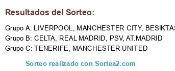 Lista de participantes: PSV, BESIKTAS, CELTA, AT.MADRID, MANCHESTER UNITED, LIVERPOOL, ROMA, REAL MADRID, TENERIFE, MANCHESTER CITY.