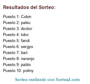 Lista de participantes: Colon, pakiu, lobo, poliny, bari, sergyo, pablo, fandi, naranjo, doctor.