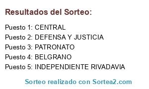 Lista de participantes: DEFENSA Y JUSTICIA, CENTRAL, BELGRANO, PATRONATO, INDEPENDIENTE RIVADAVIA.