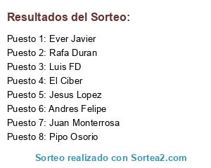 Lista de participantes: Ever Javier, Jesus Lopez, Rafa Duran, Juan Monterrosa, Pipo Osorio, Luis FD, Andres Felipe, El Ciber.