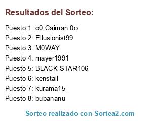 Lista de participantes: Ellusionist99, M0WAY, kenstall, mayer1991, bubananu, BLACK STAR106, kurama15, o0 Caiman 0o.