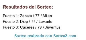 Lista de participantes: Diop / 77 / Levante, Zapata / 77 / Milan, Caceres / 79 / Juventus.