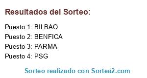 Lista de participantes: BENFICA, PSG, PARMA, BILBAO.