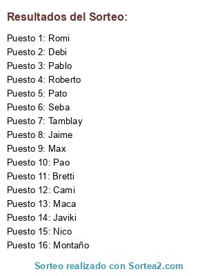 Resultados del sorteo: