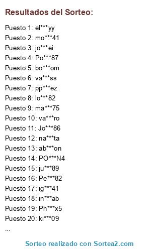 Resultados del sorteo: