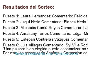 - Ganador 2: Jaqui Herlo Comentario: Blanca Herlo Hugo Artemio Becerra Naty López Paola Escobedo