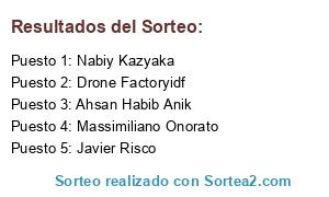 Lista de participantes: Nabiy Kazyaka, Drone Factoryidf, Javier Risco, Massimiliano Onorato, Ahsan Habib Anik.