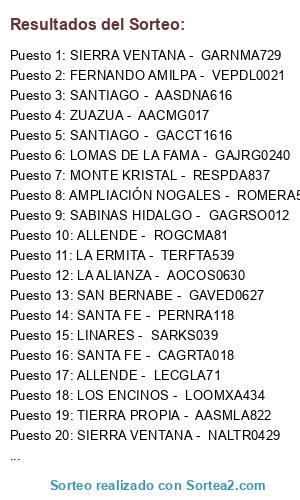 Resultados del sorteo: