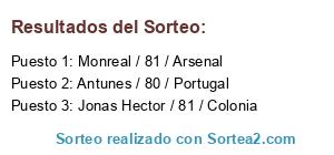 Lista de participantes: Monreal / 81 / Arsenal, Antunes / 80 / Portugal, Jonas Hector / 81 / Colonia.