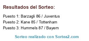 Lista de participantes: Kane 85 / Tottenham, Barzagli 86 / Juventus, Hummels 87 / Bayern.