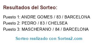 Lista de participantes: PEDRO / 83 / CHELSEA, MASCHERANO / 84 / BARCELONA, ANDRE GOMES / 83 / BARCELONA.