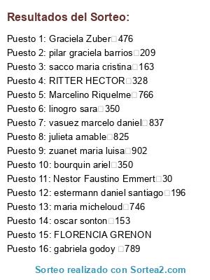 Resultados del sorteo: