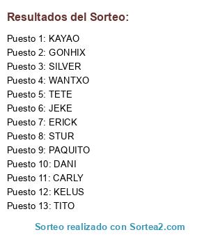 Lista de participantes: JEKE, TITO, DANI, TETE, XABI, KELUS, CARLY, WANTXO, STUR, SILVER, PACO, ERICK, KAYAO, MARIO.