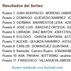- Puesto 11: PABLO RINCON ESTRADA 50613309S pablo.957@hotmail.com 635589426