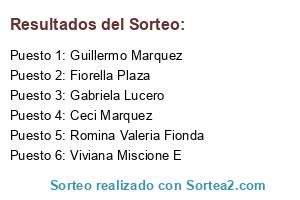 Lista de participantes: Abigail P Yahari(10), Acasuso fodie srl(20), Adrian Reyes(2), Adriana Ranalli(4), Agustina Aguinaga(5), Agustina Areco(9), Agustina Doporto(4), Agustina Mangieri(3), Agustina Nasuti (37), Ailen Yael Masferrer(5), Aldana Soledad Hernandez(2), Ale Toscano(1), Alejandra Paredes(1), Alejandra Talbot(14), Alexis Hergenrether(4), Alicia Graciela Molina(6), Aluminej Jensen(3), Amalia Nuñez(2), Ana Ines Arteaga(5), Ana Laura Gutiérrez(3), Ana Molina(50), Anabel Correa(3), Analia Garmendia(4), Andrea Chancheff(1), Andrea Jimena Estefania(18), Antonella Baldan(1), Antonio Gonzalo Fierro(5), Arianna Pierini(4), arielforcinito(2), Axel Aquiles Loffi(10), Aylen Freide(1), Bárbara Denise Montenegro(14), Barbara Piotrowski(5), Beatril Delio(3), Belén Kaulitz(1), Belén López(2), Belen Salerno Rosales(0), Belinda Gonzalez(1), Braian Pabon(3), Camila GZ(4), Camila Basso(2), Camila Beatriz Saleme(2), Camila Bolteau(6), Camila Cardozo(2), Camila Flores(5), Camila Magali Gaetan(3), Camila Oliva(2), Camila Rocio Navarro(3), Candela Liuzzi(3), Candelaria Palazzo(3), Carina Sacavino(1), Carla Cerrina(4), Carla Kaganovicz(2), Carla Torres(4), Carla Veroni Rimini(5), Carlos Panuncio(9), Carolina Lucia Campi(5), Carolina Magali Rossi(10), Carolina Stanga(2), Carolina Torelli(1), Ceci Marquez(13), Cecilia Laurino(5), Cecilia Lazzeroni(10), Chaban Fioravanti(45), Charly Zicavo(4), @christian.rodriguez, Cintia Calero(4), Claudio Alejandro Nosti(30), Claudio Gaston Ozan(2), Constanza Malegarie(1), Cristina Valeria Santin(2), Daniel Gallego(5), Daniel Medina(4), Daniela Belen(2), Dariana(5), Debora Inés Grieco Monteros(3), Delfina Borrajo(3), Delfina Caceres(1), Delfina Cidre(3), Diana Pomerantz(5), Eliana Suarez(4), Elssy Escobar(5), Estanislao Gutierrez(3), Estefania Tallarico(24), Eugenia Casali(13), Eugenia Molina(10), Eva Natalia Tortorella(5), Ezequiel Martin(2), Fabricio Carboneti(10), Federico Movilla(5), Fernanda Vanesa Ianotti(1), Fernando Arias(15), Fernando Ariel Ojeda(6), fiamap0998(2), Fiorella Aye Jarzynski(15), Fiorella Plaza(3), Flavia Ferrari(2), Flavia Giménez Planes(1), Flavia Lisette Frutos(3), Flavia Noemi Cassaza(2), Gabriela Fournier(9), Gabriela Lucero(4), Gabriela Pomponio(15), Gabriela Sanchez(34), Gimena Chiappe(5), Giselle Dieser(1), Gonzalo Carballo(3), Gonzalo Fierro(6), Graciela Lago(5), Graciela Marcuzzi(2), Graciela N Alarcon(3), Graciela Noe Rouge(5), Graciela Rouge(5), Guada Izzo(8), Guadalupe Alvarez(2), Guadalupe Araujo(5), Guillermo Marquez(5), Gustavo Jorge Collado(5), Hecmary Suarez(2), Hernan TA(2), Horacio Ramirez(5), Iara Bustos de Lara(1), Iara Vizcaíno(1), Ignacio Marquez(5), Irene Machuca(3), Irina Carral(4), Irma Gomez(3), Irma Wiedemann(3), Ivone Burgos(5), Jacqueline Martinez(2), Jairo Luis Bernaola Torres(1), Jazmin Caceres(1), Jazmín Holthoff(1), jclericetti(8), Jessica Casselli(6), Jessika Heredia(4), Jime Lois Milevicich(5), Jimena D Donato(5), Joaquin Gonzalez Innocenti(2), Johanna C molina(10), Jorgelina Marisa Longhi(1), Julia Scherzer(8), Julian Baffico(5), Julián Ferreyra(4), Julieta Depaoli(3), julimartinoya(9), Julio Cesar Girela(4), Julio Mendez(2), julitasuarez(5), Katherine Laviano(1), La Maru Diseños(6), Laura Avalos(5), Laura Lolo(5), Laura Sciera(3), Leslie Cintia Morales(6), Lidia Lopez(8), Lilia Camarotte(2), Lionel A Fridman(5), Leticia Calo(50), Lorena Zalazar(6), Lourdes Martin(1), Luana Caputo(2), Lucas Andres Leiva(1), Lucas Birngerg(5), Lucas Pujol(30), Lucia Marcone(10), Lucia Soria(2), Luciana Alvarez(2), Luciana Rossi(3), Luciana Vergara Liotta(15), Ludoviko Park(20), Luis Alejandro Navarro(3), Luis Brito(2), Luis Salazar(1), Magali Mollard(12), mainesiglesias(3), Malena Leonelli(3), Marcelo Claudi Esperon(5), Maria Alejandra Colella(15), María Amelia Giles(3), María Celeste Díaz(2), Maria Clara Paz(3), Maria Coral Peduto(6), Maria del Rosario Lobos(15), Maria Eugenia Eremita(14), Maria F Ibañez Medeiro(2), Maria Fernanda Maidana(3), Maria Florencia Castro(5), Maria G Chiappe(5), Maria Laura Duarte(3), Maria Laura Lorenzo(18), Maria Leiva(7), Maria Nazarena Moro Nasti(3), Maria Te Battaglia(10), Maria Tula(5), Maria V Oviedo(2), Maria Victoria Gentile(3), María Ysayas(5), Mariana Choua(5), mariana.turri(2), Marianela Zambianchi(3), Mariano Stasi(6), Mariela Aguilar(1), Mariela Torres(2), Marina Ferrario(5), Marina Fianucci(3), Marina Lorenzo(3), Marisol Viora(2), Marlene Loto(2), Marta Greppi(6), Martin Alfredo Giusti(20), Martin Federico Calderon(20), Martina Maite Sauré(2), Martina Vieyra(4), Martinaazcarraga5(1), martinaazcarraga5(2), martinavera84(5), Maru Geninazzi(14), Maru Salo(5), maru.jaime79(3), Matias Benavides(18), Matias Zamorano(3), Mau Vivenes Maduro(2), Mauro Comito(10), Maymar Méndez(5), Mayra Carral(5), Melanie Sofia Zamami(5), Melany Wersocky(3), Melisa Belen Galperin(2), Melisa Biondi(5), Melisa Calvet(2), Melisa Echenique(25), Melisa Luz Peralta(10), Melissa Y. Respighi(5), Melowp Perez(2), mghelerman(5), Mica Barbieri(32), Micaela Wittstatt(3), Monica Niz Suarez(3), Muriel Guzman(20), Nadia Cardozo(3), Nancy Aguirre(60), Naomi Osses(4), Natalia Navarro(10), Natasha Sandra(5), Nieves (20), Norma Caceres(3), Norma Varela(4), P Artcanuthurry(10), Paloma Silberberg(5), Pamela Caruzo(2), Paola Belfiglio(9), Paola Pabon(5), Paolo Ariel Campos(5), Patricia Cerruti(5), Patricia Valdez(2), Paula Azucena De Rosa(10), Paula Carrivale(8), Paula Cecilia Freda Salguero(5), Paula Foselli(5), Paula Ini(15), Ricardo Jorge Piotrowski Manes(4), Rocio Ortega(14), Rocio Vera(19), Rodrigo Castillo(3), Romina Aguirre(5), Romina epsztejn(5), Romina Gonzalez(10), Romina Paez(3), Romina Valeria Fionda(9), romina.iglesias(3), Roxana Gómez(1), Roxana Oriana Gonzalez Sanjines(5), Sabrina Medina(5), Sabrina Nerea(3), Silvia Eliana Lombardo(10), Sofia Ciuro(2), Sofia Stape (jack)(2), Sol Corra(5), Solange Rosich(10), Soledad Aguilar(1), Stefania Gherbassi(2), stefania haydee bavio(9), Stella Maris Fontan(15)