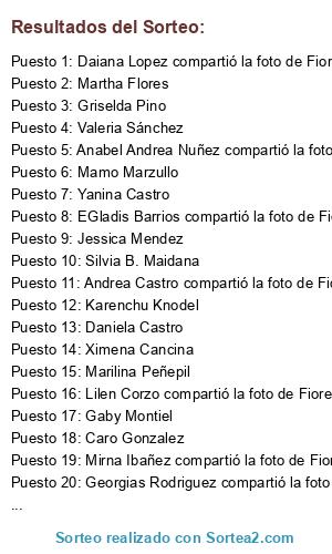 Lista de participantes: Adriana Cajarville , Adriana Erdosio , Adriana Mella compartió la foto de Fiore Helados. , Adriana Patino , Agus Roccatagliata , Ailin Fernandez , Ale Bilbao , Ale Tripailao compartió la foto de Fiore Helados. , Alejandrina Calderon , Ali Gonzalez , Alicia Angelosanto , Ana Maria Grill , Anabel Andrea Nuñez compartió la foto de Fiore Helados. , Anabel Rios , Anabella Palma , Analia Elizabeth Martinez , Andrea Aguirre compartió la foto de Fiore Helados. , Andrea Castro compartió la foto de Fiore Helados. , Andrea Lino compartió la foto de Fiore Helados. , Andy Antonelli compartió la foto de Fiore Helados. , Anto Clementis compartió la foto de Fiore Helados. , Anto Segundo , Ariana Galbato , Ariel Vasquez compartió la foto de Fiore Helados. , Artemides Zatti , Atenas Peña , Atenas Peña compartió la foto de Fiore Helados. , Aurora Echeverria , Aurora Mabel Montani compartió la foto de Fiore Helados. , Aye Marraco , Ayelén Linares , Azucena Aschkar , Azucena Aschkar compartió la foto de Fiore Helados. , Belén Cristian Peñepil , Belu Curulen , Belu Curulen compartió la foto de Fiore Helados. , Betty Jelves compartió la foto de Fiore Helados. , Betty Poli , Breen Culliiu , Brenda Echegaray , Brenda Staskevich , Brigui Gueraleo Alfaro compartió la foto de Fiore Helados. , Camii Duarte , Camila Roccatagliata , Cañete Damaris , Carina Cabezas , Carmen Ins , Caro Gonzalez , Carolina Carrizo , Carolina Gerlinger Abel , Carolina Muñoz compartió la foto de Fiore Helados. , Catalina Amacio , Cecilia Portel , Celes Montenegro compartió la foto de Fiore Helados. , Celeste Busarello compartió la foto de Fiore Helados. , Cintia Ibañez , Cintia Pessacq compartió la foto de Fiore Helados. , Clau Bell , Claudia Carolina Bustos , Claudia Huenulan , Cristina Amezaga , Cynthia Outeda compartió la foto de Fiore Helados. , Daiana Garrido Utrero , Daiana Lopez compartió la foto de Fiore Helados. , Dangela Araya compartió la foto de Fiore Helados. , Daniela Andrea Passarelli , Daniela Castro , Daniela Guidi , Danny Antual , Dany Yanca , EGladis Barrios compartió la foto de Fiore Helados. , Elii Pinto , Elizabeth Gomez compartió la foto de Fiore Helados. , Elsa Peñepil , Estefania Kunst , Estela C de J , Eugenia Molina compartió la foto de Fiore Helados. , Eva Sierra compartió la foto de Fiore Helados. , Fabian Cepeda , Fabiana Alsamendi compartió la foto de Fiore Helados. , Fernanda Collado , Fiorella Fioriti compartió la foto de Fiore Helados. , Flaa Zabala , Floorcita Mosqueira compartió la foto de Fiore Helados. , Flor Garcia compartió la foto de Fiore Helados. , Florencia Casco , Fox Cristian Cam , Gabriela Vilcarromero , Gaby Arriola , Gaby Montiel , Gaby Passeggi , General Enrique Godoy, Rio Negro, Argentina , Georgias Rodriguez compartió la foto de Fiore Helados. , Georgina Gómez , Giise Colon , Gisela Bernachea , Giselle Santana , Graciela Mabel Verzini , Griselda Pino , Guada Echeverria , Guada Ulloa , Iliana Villegas de Cordoba , Ines Carp , Ivanna Orueta , Jacquelin Nievas , Jefa de Jefass.:$ en Club de Gimnasia y Esgrima La Plata , Jessica Mendez , Josefina Martin , Juan R Carrillo , Juli Galvez , Julieta Ariente , Julieta Soledad compartió la foto de Fiore Helados. , Karen Poblete compartió la foto de Fiore Helados. , Karen Salicioni , Karenchu Knodel , Kari Peña , Kary Pavon , Katherine van Doorn , , Lara AL , Lau Las Grutas compartió la foto de Fiore Helados. , Laura Cuevas compartió la foto de Fiore Helados. , Laura Griselda Crespo , Laura Martinez , Laura Pintos , Leonela Alaimo , Leonella Dina , Leticia Rivera , Lidia Gloria Quizama , Lilen Corzo compartió la foto de Fiore Helados. , Liliana Ines Diez compartió la foto de Fiore Helados. , Liliana Nuñez compartió la foto de Fiore Helados. , Lily Carrillo compartió la foto de Fiore Helados. , Loana Lapa , Lorena Mardones , Lorena Mardones compartió la foto de Fiore Helados. , Lorena Nichea , Lu Bazani compartió la foto de Fiore Helados. , Lu Duran , Lucas Emmanuel Fuentealma , Lucia Belen Alvarez , Lucia Belen Mancinelli , Lucia Varela , Luii Castaños , Luisina Bartolo compartió la foto de Fiore Helados. , Luz Tushe Casalla , Luz Valentina , Majo Gravano , Mamo Marzullo , Manager en Beliebers - All around the world. , Marcela Hedyt compartió la foto de Fiore Helados. , Marcelo Lopez compartió la foto de Fiore Helados. , Marcia Gonzalez , Marcos Delménico , Maria Del Carmen Calarco , Maria Vega compartió la foto de Fiore Helados. , Maria Virginia Brusa , Mariangel Bandrés , Mariangel Ugalde , Marilina Peñepil , Marina Gómez , Marina Peretti , Marisa Mazzochi , Marlen Mendez compartió la foto de Fiore Helados. , Marta Aliante , Marta Castellanos , Marta Lidia Tinture , Marta Reyes , Martha Flores , Martha Sabadin , Mayra Castro compartió la foto de Fiore Helados. , Melii Schap , Miguelina Lemunao , Mirna Ibañez compartió la foto de Fiore Helados. , Mirna Mona MenVal , Mirta Carriqueo , Mirta Mabel Henriquez , Monica Nanci Fernandez compartió la foto de Fiore Helados. , Monica Nuñez , Natalia Laurente , Mucama en Hotel nijar , Naati Carrillo , Natalia Alvarez , Natalia Marzullo , Natalia Sarra , Natalia Vane , Naty Nuñez , Nora Beatriz Safenreiter , Pame Rasquela , Pamee Chazarreta , Paula Crespo , Ro Zapata compartió la foto de Fiore Helados. , Roa Mirthy , Roberta Pomar , Rocío Salinas , Romi Na , Romina Pojer , Romina Sierra , Rosa Diaz compartió la foto de Fiore Helados. , Rosana Minazzoli , Saba Barria Fernandez compartió la foto de Fiore Helados. , San Antonio Oeste , Sandra Carante , Sandra Gayardo compartió la foto de Fiore Helados. , Sandra Gelos , Sandra Huanque , Sandra Vanina ʚiɞ , Sandy Vera , Sary Danilo Cande Carlos compartió la foto de Fiore Helados. , Silvana Cabrera , Silvana Rodriguez compartió la foto de Fiore Helados. , Silvana Sabbadini Percaz , Silvia B. Maidana , Silvina Frace , Silvina Judit De Benedetti , Soledad Cifuentes , 