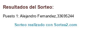 Este sorteo ha sido certificado por Sortea2. Sortea2 garantiza que: