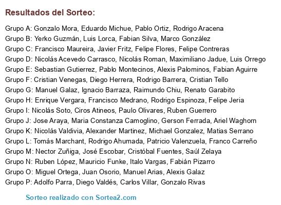 Lista de participantes: Felipe Flores, Ruben López, Nicolás Valdivia, Cristian Tello, Franco Carreño, Fabián Pizarro, Miguel Ortega, Gonzalo Mora, Adolfo Parra, Rodrigo Aracena, Felipe Jeria, Cristóbal Fuentes, Francisco Medrano, Nector Zuñiga, Pablo Ortiz, Ciros Atineos, Mauricio Funke, Eduardo Michue, Saúl Zelaya, Matias Serrano, Manuel Galaz, Tomás Marchant, Fabian Silva, Felipe Contreras, Nicolás Roman, Alexis Galaz, Pablo Montecinos, Rodrigo Espinoza, Marco González, Fabian Aguirre, Cristian Venegas, Enrique Vergara, Rodrigo Barrera, Alexander Martinez, Paulo Olivares, Michael Gonzalez, Ariel Waghorn, Patricio Valenzuela, Sebastian Gutierrez, Francisco Maureira, Juan Osorio, Jose Araya, Diego Valdés, Nicolás Soto, Luis Orrego, Gerson Ferrada, Renato Garabito, Maximiliano Jadue, Carlos Villar, José Escobar, Luis Lorca, Manuel Arias, Gonzalo Rivas, Ruben Guerrero, Alexis Palominos, Ignacio Barraza, Diego Herrera, Maria Constanza Camoglino, Rodrigo Ahumada, Javier Fritz, Raimundo Chiu, Nicolás Acevedo Carrasco, Italo Vargas, Yerko Guzmán.