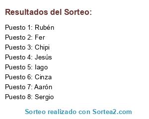Lista de participantes: Rubén, Fer, Chipi, Iago, Aarón, Jesús, Sergio, Cinza.